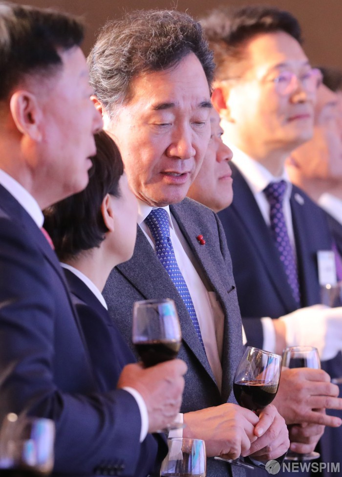 [서울=뉴스핌] 백인혁 기자 = 이낙연 국무총리가 3일 오후 서울 중구 롯데호텔에서 열린 2020 건설인 신년인사회에서 김현미 국토교통부 장관과 대화를 나누고 있다. 2020.01.03 dlsgur9757@newspim.com