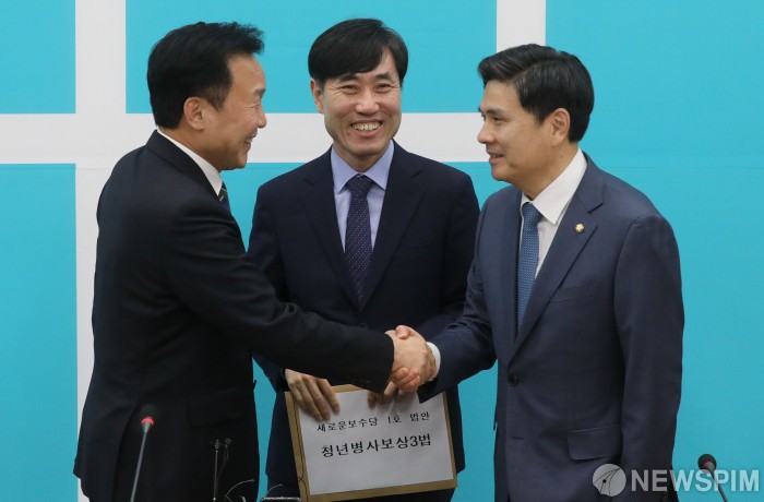 [서울=뉴스핌] 최상수 기자 = 지상욱 새로운보수당 의원(오른쪽)이 7일 오후 서울 여의도 국회에서 손학규 바른미래당 대표를 예방(왼쪽)하여 악수를 나누고 있다. 2020.01.07 kilroy023@newspim.com