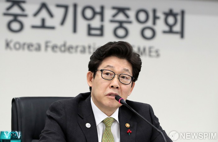 [서울=뉴스핌] 정일구 기자 = 조명래 환경부 장관이 8일 오후 서울 영등포구 중소기업중앙회에서 열린 중소기업 규제해소 간담회에서 모두발언을 하고 있다. 2020.01.08 mironj19@newspim.com