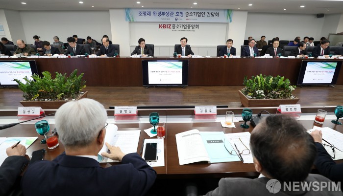 [서울=뉴스핌] 정일구 기자 = 조명래 환경부 장관이 8일 오후 서울 영등포구 중소기업중앙회에서 열린 중소기업 규제해소 간담회에서 모두발언을 하고 있다. 2020.01.08 mironj19@newspim.com