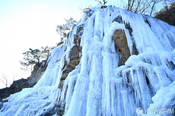 [화천=뉴스핌] 이순철 기자 = 한파가 찾아온 14일 오후, 화천군 화천읍 대이리 딴산의 폭포가 추위로 인해 그대로 얼어붙어 거대한 얼음폭포로 변했다. 추위만큼 날카롭게 맺힌 고드름이 추위를 실감케 하고 있다.[사진=화천군] 2020.01.14 grsoon815@newspim.com
