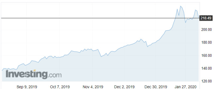 팔라듐은 최근 신종 코로나 바이러스 우려로 중국 경제 둔화 우려가 커지며 원자재 가격이 하락하는 상황 속에서도 금보다도 가파른 상승세를 보이며 주목받았다. 연초대비 금 가격이 3.3% 오를 동안 팔라듐은 25.8% 올랐다. 구리는 같은기간 6.9% 빠졌고 유가는 브렌트유 기준 16.8% 내렸다.