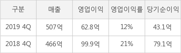 ◆ 4Q 실적, 매출액 507억원 전년동기 대비 8.7% 증가... 영업이익 37%↓