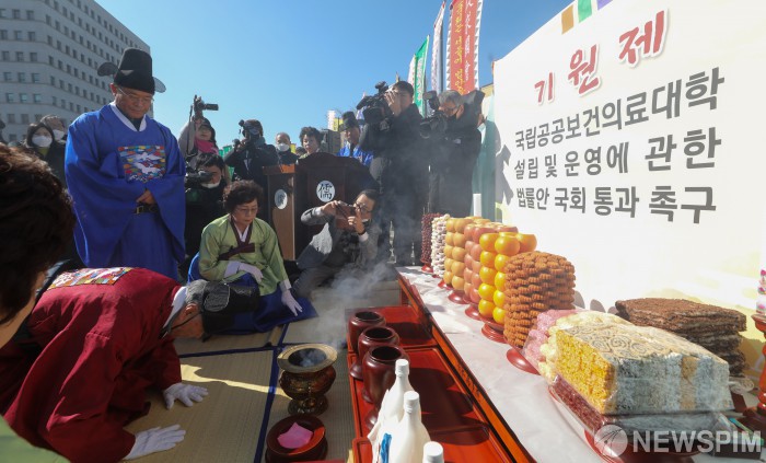 '큰 절 올립니다' 국회 앞서 열린 국립공공의료대학 법률 통과 기원제