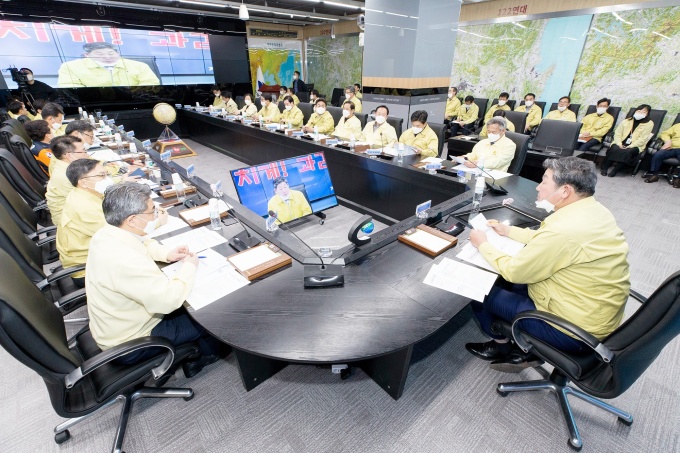 [경북=뉴스핌] 남효선 기자 = 장경식 경북도의회 의장이 20일 경북도 재난안전대책본부에서 코로나19 대처상황 및 향후대책을 논의하기 위한 관계기관 대책회의를 가졌다.