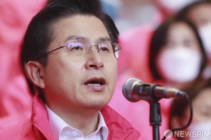[서울=뉴스핌] 이형석 기자 = 황교안 미래통합당 대표가 1일 오후 서울 여의도 국회에서 열린 미래통합당-미래한국당 ‘나라살리기’ ‘경제살리기’ 공동선언식에서 인사말을 하고 있다. 2020.04.01 leehs@newspim.com