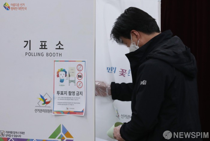 [서울=뉴스핌] 백인혁 기자 = 제21대 국회의원 선거 투표율이 오후 3시 기준 56.5%를 돌파한 15일 오후 서울 마포구 서강동 주민센터에 마련된 서강 제1투표소에서 유권자들이 투표를 하고 있다. 2020.04.15 dlsgur9757@newspim.com