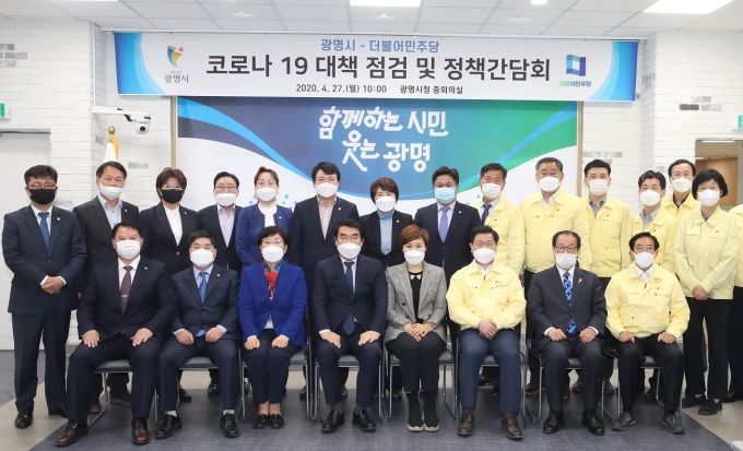 | 광명시는 27일 시청 중회의실에서 더불어민주당 소속 국회의원 당선인, 시·도의원과 함께 정책간담회를 개최했다. [사진=광명시] 2020.04.27 1141world@newspim.com |