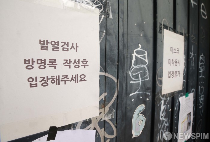 [서울=뉴스핌] 윤창빈 기자 = 8일 오후 서울 용산구 이태원 소재의 한 클럽이 지난 2일 신종 코로나바이러스 감염증(코로나19) 확진 판정을 받은 A씨가 다녀간 것으로 확인되어 영업이 중지되어 있다. 2020.05.08 pangbin@newspim.com