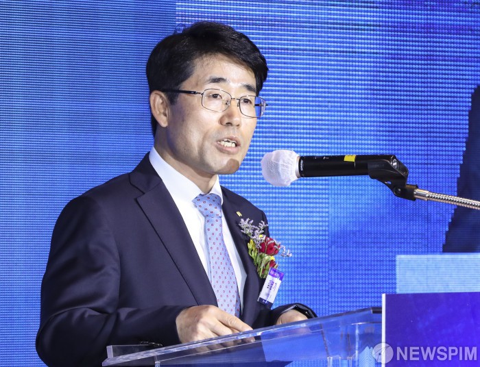 [서울=뉴스핌] 이한결 기자 = 김영기 금융보안원 원장이 11일 오후 서울 종로구 포시즌스 호텔에서 열린 ‘금융 데이터거래소 출범식’에서 인사말을 하고 있다. 2020.05.11 alwaysame@newspim.com