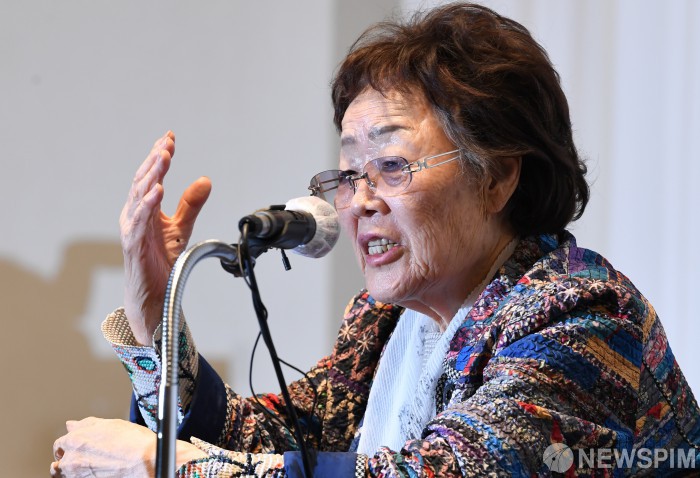 [대구=뉴스핌] 정일구 기자 = 정의기억연대(정의연) 회계관리 부실과 전 이사장인 윤미향 더불어민주당 당선인의 후원금 사적 유용 의혹을 최초로 제기한 일본군 위안부 피해자 이용수 할머니가 25일 오후 대구 수성구 인터불고 호텔에서 2차 기자회견을 하고 있다. 2020.05.25 mironj19@newspim.com
