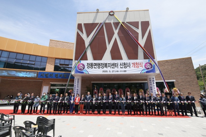 [사천=뉴스핌] 이경구 기자 = 경남 사천시는 27일 정동면민의 오랜 숙원 사업인 '정동면행정복지센터' 신청사 개청식을 가졌다.