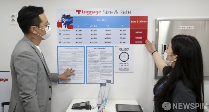 [서울=뉴스핌] 이한결 기자 = 2일 오후 서울 용산구 서울역 지하철 내에 개소한 ‘지하철 생활편의센터(유인보관소, T-Luggage)’를 한 시민이 이용하고 있다. ‘지하철 생활편의센터’는 역사 내 공실상가 및 유휴공간 등을 활용해 설치되며, 유·무인 택배물품 보관·접수·픽업, 개인물품 보관, 개인교통수단 관리, 스마트폰 배터리와 우산 대여 등 서비스를 제공할 예정이다. 2020.06.02 alwaysame@newspim.com