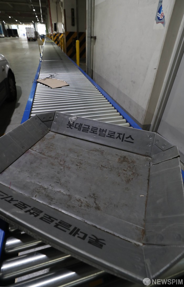 [서울=뉴스핌] 김학선 기자 = 15일 신종 코로나바이러스 감염증(코로나19) 확진자가 발생한 서울 송파구 롯데택배 동남권물류센터 내 작업장에 적막감이 흐르고 있다. 롯데택배는 확진자 발생에 따라 근무자 159명이 전원 자가격리에 들어 갔으며 물류센터는 방역 후 폐쇄조치했다. 2020.06.15 yooksa@newspim.com