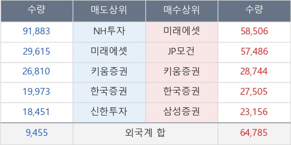 [표] 외국인ㆍ기관 순매매량 (단위 주)