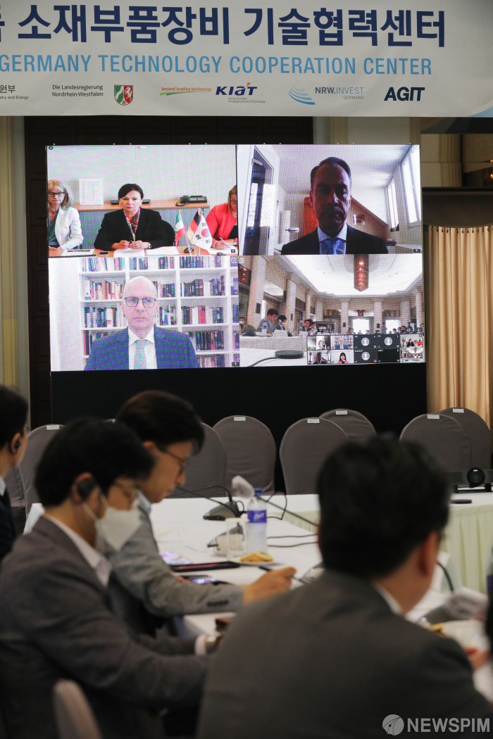 [서울=뉴스핌] 백인혁 기자 = 정승일 산업통상자원부 차관이 18일 오후 서울 중구 프레스센터에서 열린 한-독 소재부품장비 기술협력센터 온라인 개소식에서 인사말을 하고 있다. 2020.06.18 dlsgur9757@newspim.com