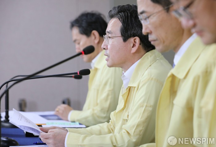 [서울=뉴스핌] 백인혁 기자 = 김용범 기획재정부 제1차관이 2일 오전 서울 종로구 정부서울청사 브리핑실에서 제9차 비상경제 중앙대책본부 회의 결과를 브리핑하고 있다. 2020.07.02 dlsgur9757@newspim.com