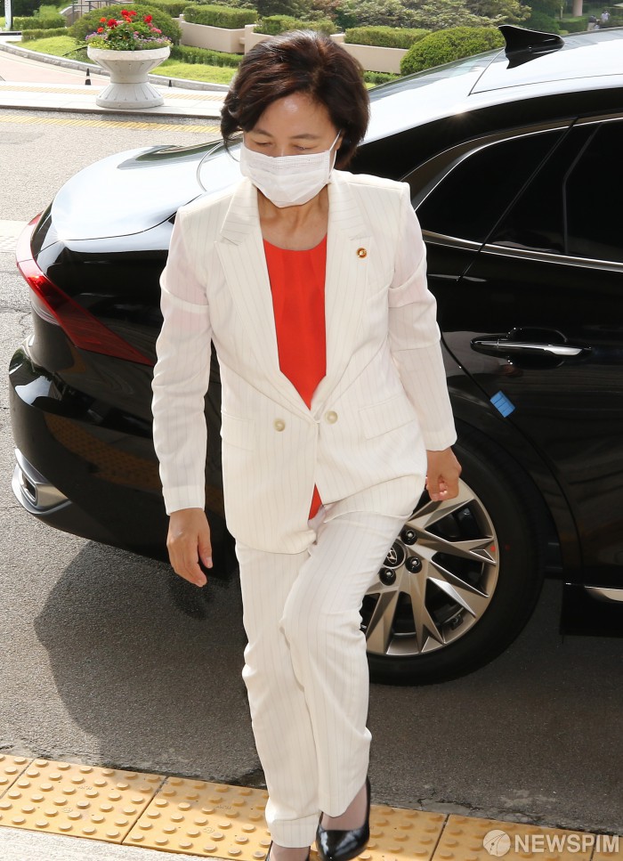 [과천=뉴스핌] 백인혁 기자 = 추미애 법무부 장관이 6일 오전 경기 과천시 법무부에 출근하고 있다. 지난 3일 추 장관의 '수사지휘권' 발동으로 윤 총장은 예정된 전문수사자문단 소집을 취소했지만, 수사지휘권 수용 여부를 밝히지 않은 채 이튿날 고검장·검사장 회의 소집으로 대응했다. 이후 주말 내내 숙고를 거듭한 윤 총장이 이르면 오늘(6일) 입장을 내놓을 것으로 보인다. 2020.07.06 dlsgur9757@newspim.com