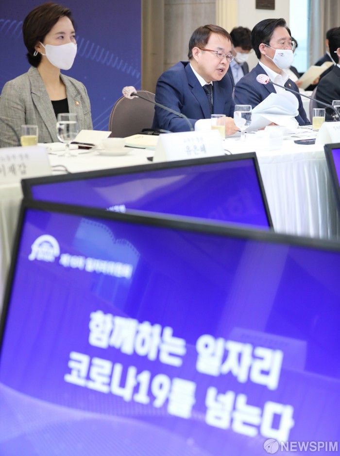 [서울=뉴스핌] 백인혁 기자 = 김용기 일자리위원회 부위원장이 22일 오전 서울 중구 한국프레스센터에서 열린 제16차 일자리위원회에서 모두발언을 하고 있다. 2020.07.22 dlsgur9757@newspim.com