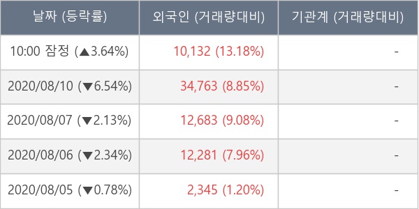[표] 외국인ㆍ기관 순매매량 (단위 주)