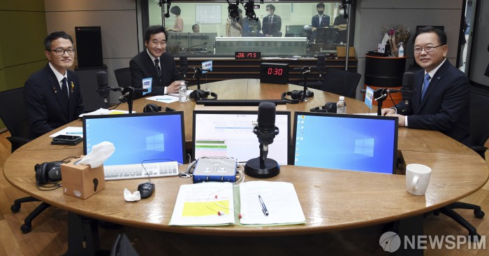[서울=뉴스핌] 국회사진취재단 = 더불어민주당 당대표 경선에 출마한 박주민(왼쪽부터), 이낙연, 김부겸 후보가 18일 오후 서울 양천구 CBS사옥에서 진행된 CBS 라디오 ‘시사자키 정관용입니다’ 에 출연, 방송토론회 전 포즈를 취하고 있다. 2020.08.18 photo@newspim.com
