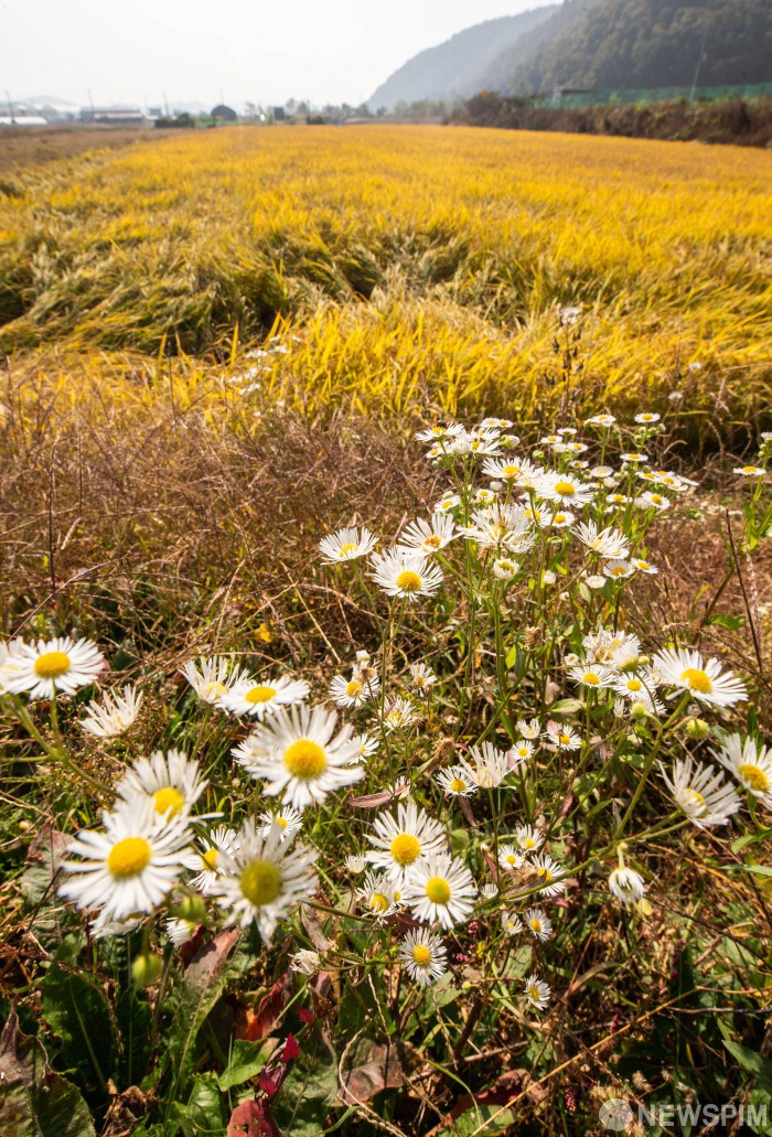 [용인=뉴스핌] 윤창빈 기자 = 완연한 가을 날씨를 보인 20일 오후 경기도 용인시 처인구의 한 논밭에 벼가 노랗게 익어가고 있다. 2020.10.20 pangbin@newspim.com