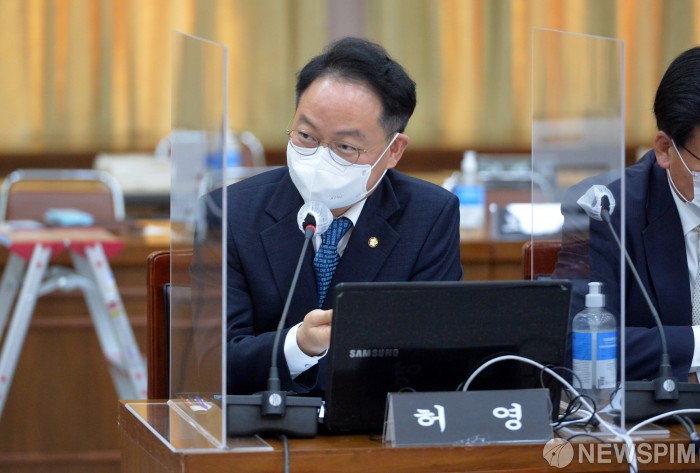 [수원=뉴스핌] 사진공동취재단 = 허영 더불어민주당 의원이 20일 경기도 수원시 팔달구 경기도청에서 열린 국회 국토교통위원회의 경기도에 대한 국정감사에서 질의하고 있다. 2020.10.20 photo@newspim.com