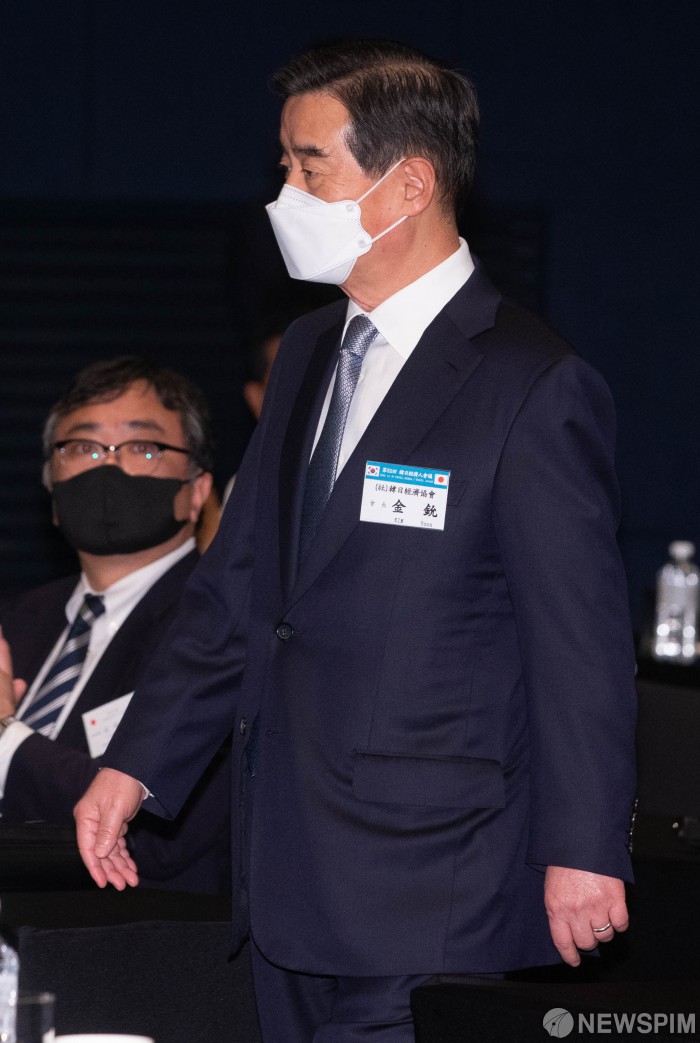 [서울=뉴스핌] 윤창빈 기자 = 김윤 한일경제협회 회장이 27일 오후 서울 서초구 JW 메리어트 서울에서 열린 제52회 한일경제인회의에 참석하고 있다. 2020.11.27 pangbin@newspim.com