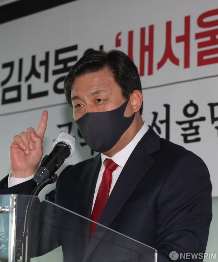 [서울=뉴스핌] 이형석 기자 = 서울시장 보궐선거 출마를 선언한 김선동 전 국민의힘 의원이 3일 오후 서울 여의도 남중빌딩 국민의힘 당사에서 공약 발표 기자회견을 하고 있다. 2020.12.03 leehs@newspim.com
