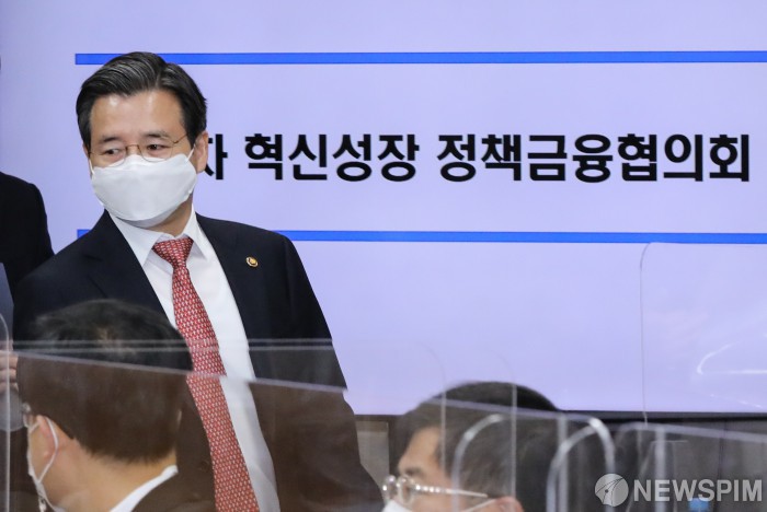 [서울=뉴스핌] 이한결 기자 = 김용범 기획재정부 제1차관이 4일 오전 서울 여의도 KDB산업은행 별관에서 열린 제4차 혁신성장 정책금융협의회에 참석하고 있다. 2020.12.04 alwaysame@newspim.com