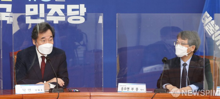 [서울=뉴스핌] 이형석 기자 = 이낙연 더불어민주당 대표가 15일 오전 서울 여의도 국회에서 응우옌 부 뚱 주한 베트남대사를 만나 인사말을 하고 있다. 2020.12.15 leehs@newspim.com