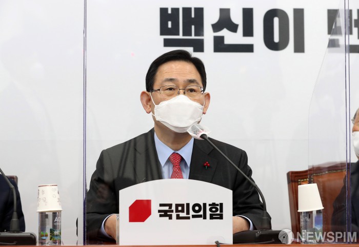 [서울=뉴스핌] 이형석 기자 = 주호영 국민의힘 원내대표가 28일 오전 서울 여의도 국회에서 열린 비상대책위원회의에서 모두발언을 하고 있다. 2020.12.28 leehs@newspim.com