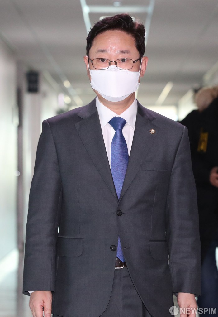 [서울=뉴스핌] 이형석 기자 = 신임 법무부 장관 후보자로 지명된 박범계 더불어민주당 의원이 30일 국회 의원회관에서 입장을 밝히기 위해 나오고 있다. 2020.12.30 leehs@newspim.com
