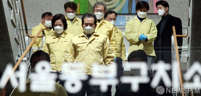 [서울=뉴스핌] 윤창빈 기자 = 정세균 국무총리가 2일 서울 송파구 동부구치소에서 추미애 법무부 장관과 신종 코로나바이러스 감염증(코로나19) 현장 점검을 하고 있다. 동부구치소에서는 전날 13명의 확진자가 나와 관련 확진자는 총 946명(전국 958명)으로 늘어났다. 2021.01.02 pangbin@newspim.com