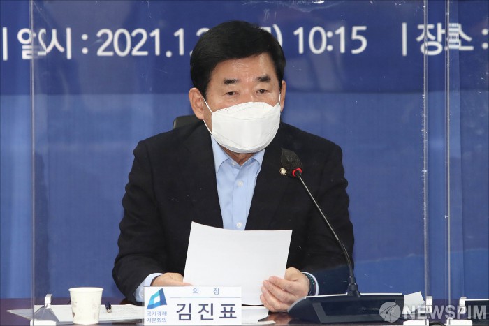 [서울=뉴스핌] 최상수 기자 = 김진표 국가경제자문회의 의장이 21일 오전 서울 여의도 국회 의원회관에서 열린 2021 국가경제자문회의 제1차 회의에서 발언을 하고 있다. 2021.01.21 kilroy023@newspim.com