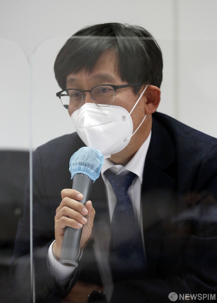 [서울=뉴스핌] 최상수 기자 = 이승준 대한병원협회 의료인력특별위원장이 2일 오후 서울 서대문구 질병관리청 수도권질병대응센터에서 열린 코로나19 백신접종 의정공동위원회 제1차 실무회의에 참석해 인사말을 하고 있다. 2021.02.02 kilroy023@newspim.com