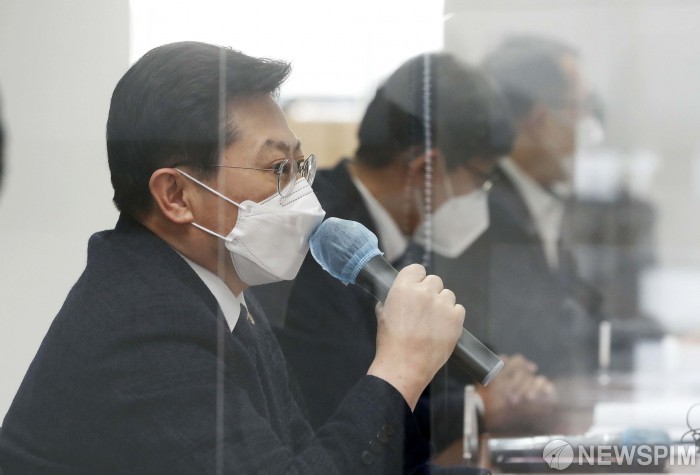 [서울=뉴스핌] 최상수 기자 = 박홍준 대한의사협회 부회장이 2일 오후 서울 서대문구 질병관리청 수도권질병대응센터에서 열린 코로나19 백신접종 의정공동위원회 제1차 실무회의에 참석해 인사말을 하고 있다. 2021.02.02 kilroy023@newspim.com