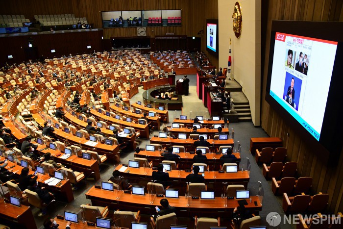 [서울=뉴스핌] 이형석 기자 = 정세균 국무총리가 8일 오후 서울 여의도 국회에서 열린 교육·사회·문화에 관한 대정부질문에 출석해 박성중 국민의힘 의원의 질의에 답변하고 있다. 2021.02.08 leehs@newspim.com