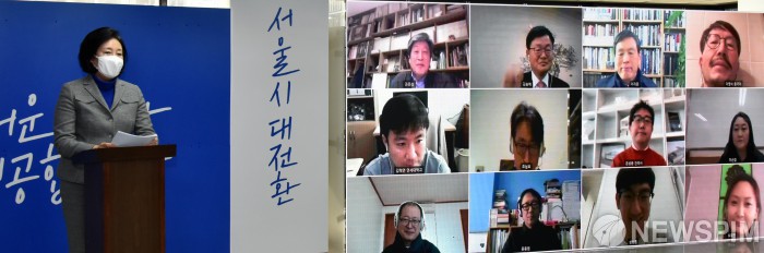 [서울=뉴스핌] 국회사진취재단 = 박영선 더불어민주당 서울시장 예비후보가 9일 오전 서울 종로구 율곡로 선거캠프에서 <서울 도시공간의 대전환 - 수직정원도시>라는 주제로 세번째 시민보고를 하고 있다. 2021.02.09 photo@newspim.com