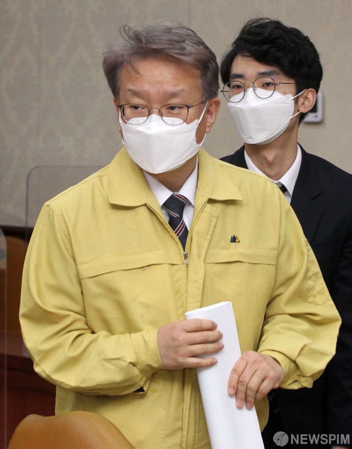 [서울=뉴스핌] 백인혁 기자 = 권칠승 중소벤처기업부 장관이 10일 오전 서울 종로구 정부서울청사에서 열린 제29차 비상경제중앙대책본부 회의에 참석하고 있다. 2021.02.10 dlsgur9757@newspim.com