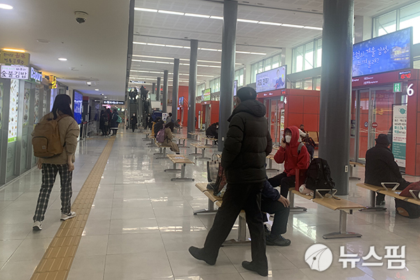 전주역 대합실 앞 출입구에는 고향을 찾는 귀성객을 맞이하기 위한 가족들이 서 있었고 대합실에는 20명 남짓한 탑승객들이 열차를 기다렸다.