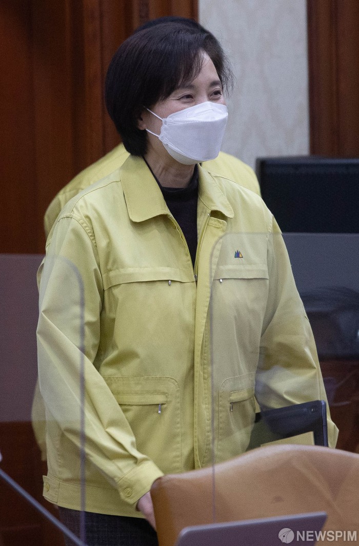 [서울=뉴스핌] 윤창빈 기자 = 유은혜 사회부총리 겸 교육부 장관이 14일 오후 서울 종로구 정부서울청사에서 열린 신종 코로나바이러스 감염증(코로나19) 대응 중앙재난안전대책본부 회의에 참석하고 있다. 2021.02.14 pangbin@newspim.com