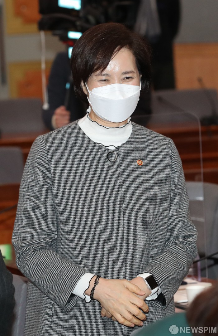 [서울=뉴스핌] 김학선 기자 = 유은혜 부총리 겸 교육부 장관이 22일 서울 종로구 정부서울청사 별관에서 열린 제4기 국가교육회의 출범식에 참석하고 있다. 2021.03.22 yooksa@newspim.com