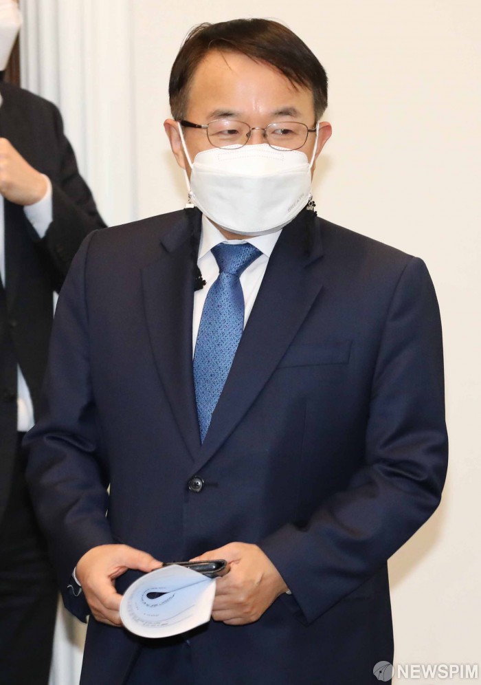 [서울=뉴스핌] 백인혁 기자 = 김용기 일자리위원회 부위원장이 26일 오전 서울 중구 프레스센터에서 열린 제19차 일자리위원회에 참석하고 있다. 2021.03.26 dlsgur9757@newspim.com