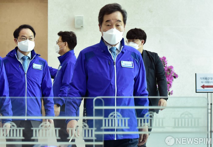 [서울=뉴스핌] 최상수 기자 = 4.7 재보선이 일주일 앞으로 다가온 31일 이낙연 더불어민주당 상임선대위원장이 서울 여의도 국회 소통관에서 대국민 호소 기자회견 후 소통관을 나서고 있다. 2021.03.31 kilroy023@newspim.com