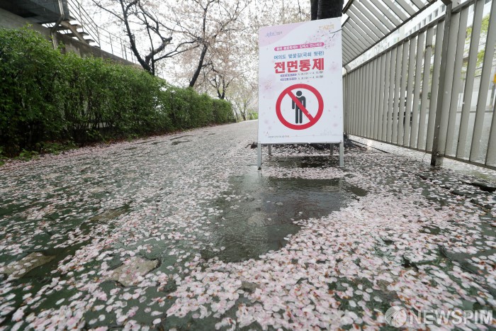 [서울=뉴스핌] 정일구 기자 = 전국 대부분 지역에서 봄비가 내린 3일 오후 서울 영등포구 여의동로에 벚꽃잎이 떨어져 있다. 2021.04.03 mironj19@newspim.com