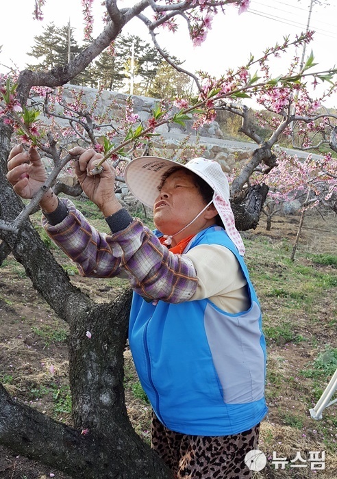 | [영덕=뉴스핌] 남효선 기자 = 경북 영덕군의 대표 농특산 브랜드인 '영덕복숭아'의 꽃이파리를 갈무리하는 과수농가. 2021.04.20 nulcheon@newspim.com |