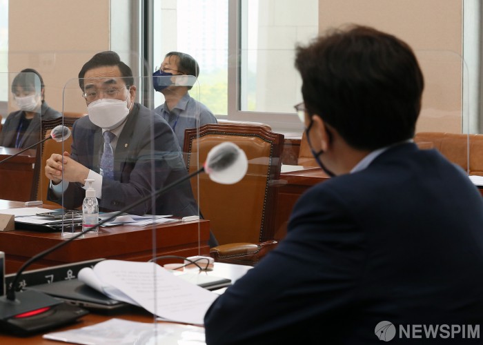 [서울=뉴스핌] 최상수 기자 = 22일 오전 서울 여의도 국회에서 열린 기획재정위원회 조세소위원회에서 박홍근 더불어민주당 의원이 국민의힘 의원들의 불참과 관련 의사진행발언을 하고 있다. 2021.04.22 kilroy023@newspim.com