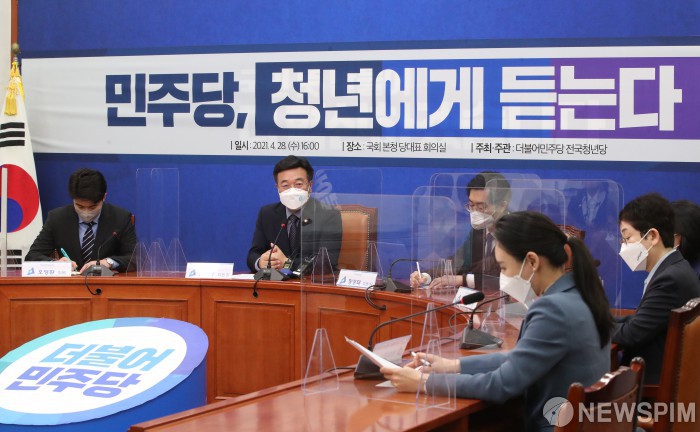 [서울=뉴스핌] 최상수 기자 = 윤호중 더불어민주당 비상대책위원장이 28일 오후 서울 여의도 국회에서 전국청년당 간담회 '민주당, 청년에게 듣는다'에서 인사말을 하고 있다. 2021.04.28 kilroy023@newspim.com