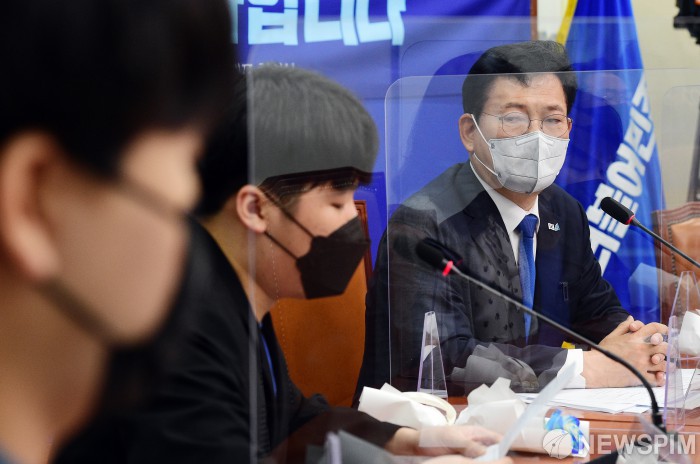 [서울=뉴스핌] 이형석 기자 = 송영길 더불어민주당 대표가 17일 국회에서 열린 성년의날 기념 20대 청년 초청간담회에서 청년들의 발언을 경청하고 있다. 2021.05.17 leehs@newspim.com